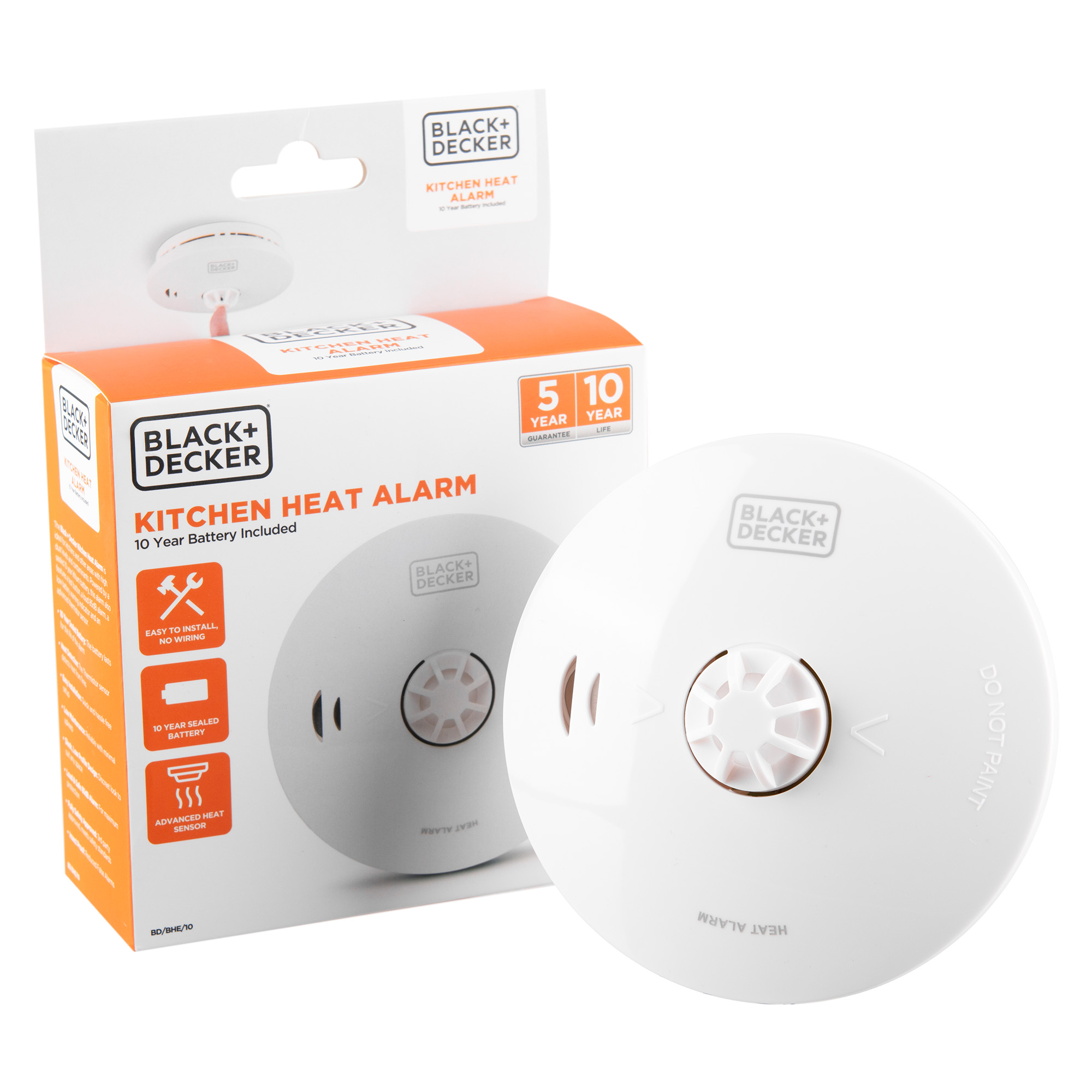 Suitable for installation in your kitchens and garages, this heat alarm from Black+Decker features a 10-year sealed lithium battery and advanced heat sensor. The heat sensor effectively detects for a rapid rise in temperature, specially designed for rooms with high dust levels, that may cause a smoke alarm to sound due to contamination.