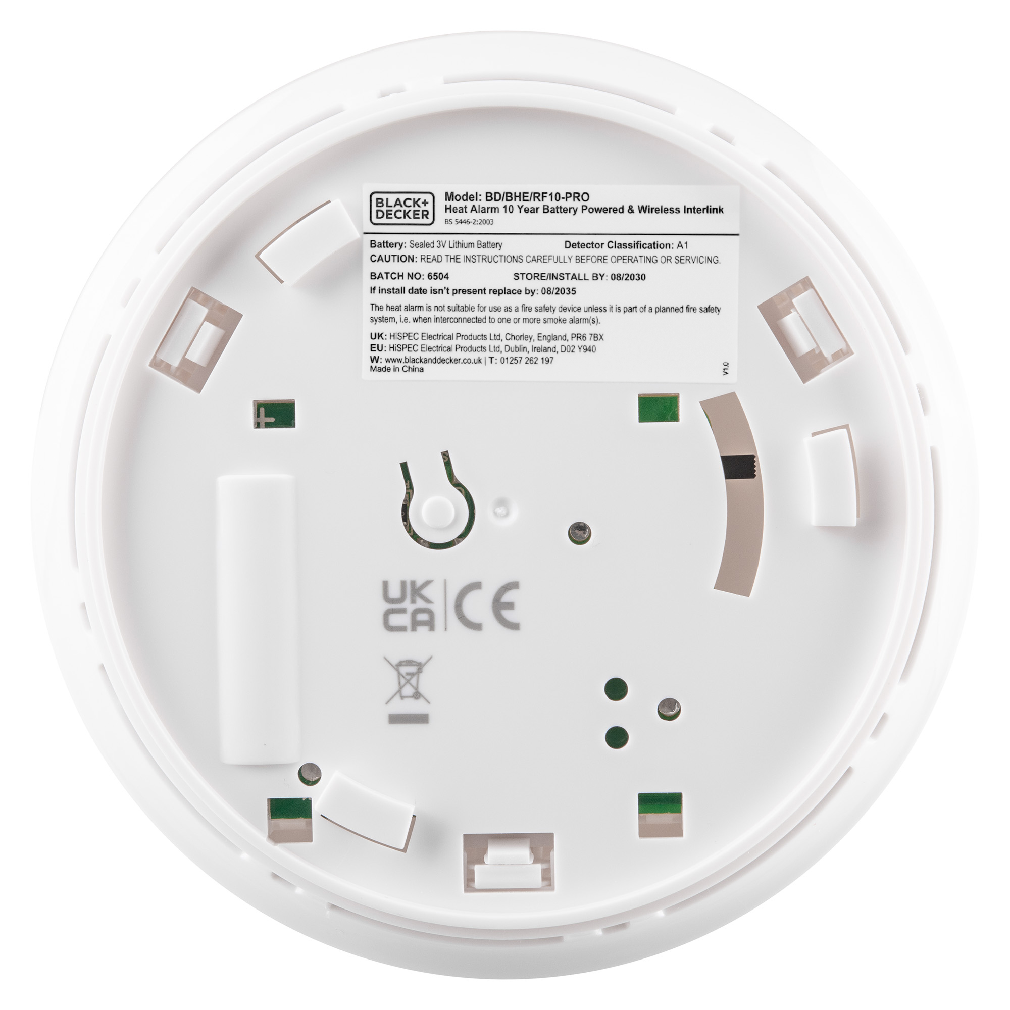 Ideal for the kitchen, the BLACK+DECKER connected heat alarm is fitted with a 10 year sealed lithium battery and can be wirelessly interlinked with up to 20 other devices from the same range. Suitable for installation in kitchens, garages and unoccupied loft spaces where false alarms are more likely due to cooking fumes or dust. Radio interconnected alarms ensures that if one alarm is triggered, all other alarms in the system will sound giving occupants the earliest warning of danger.