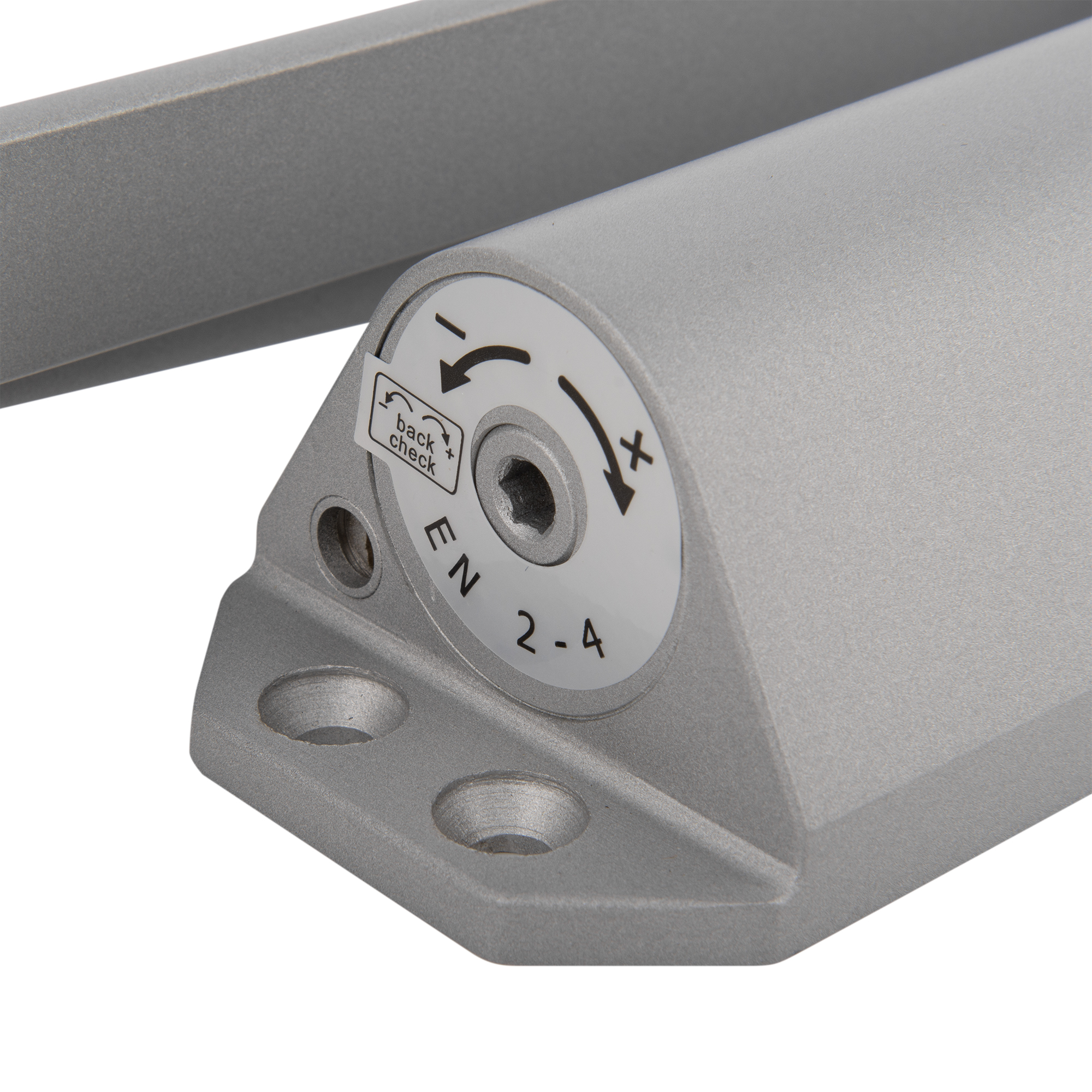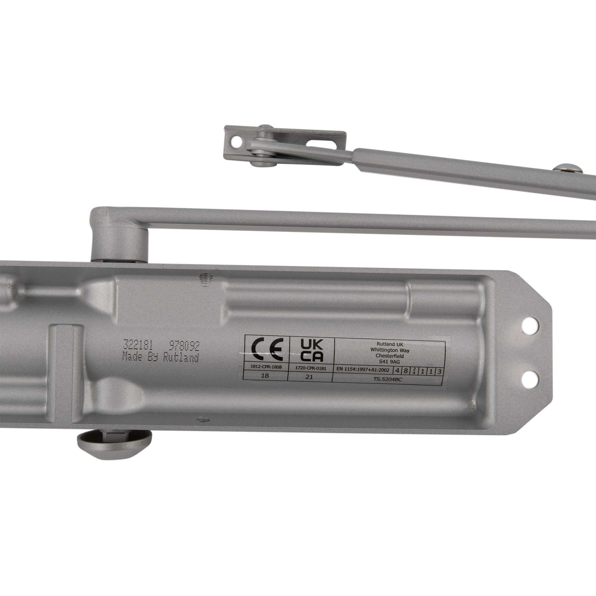 The Rutland 5204BC is an adjustable overhead door closer designed for quick installation and dependable performance, with back check as standard to prevent damage to walls and doors. The closer can be installed in Fig1 and 66 configurations and is suitable for internal doors up to 80kg and 1100mm wide.